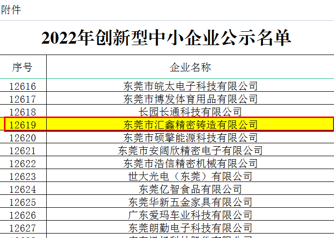喜報|東莞市匯鑫精密鑄造有限公司榮獲廣東省“2022年創(chuàng)新型中小企業(yè)”認(rèn)定!